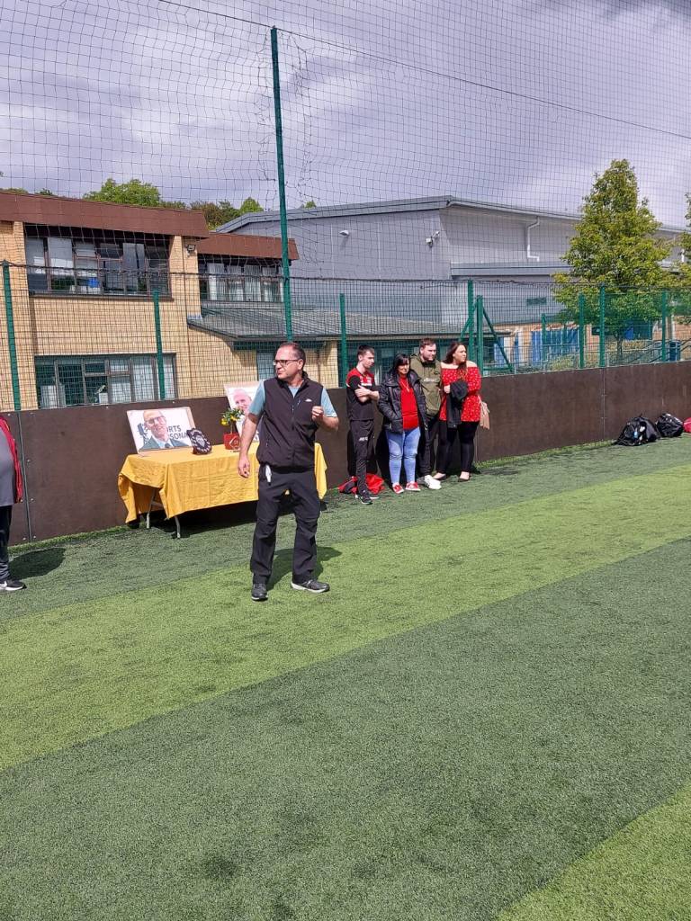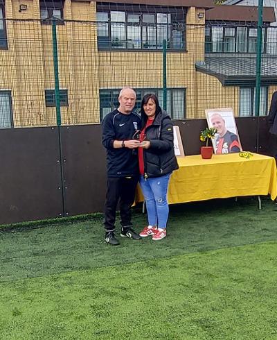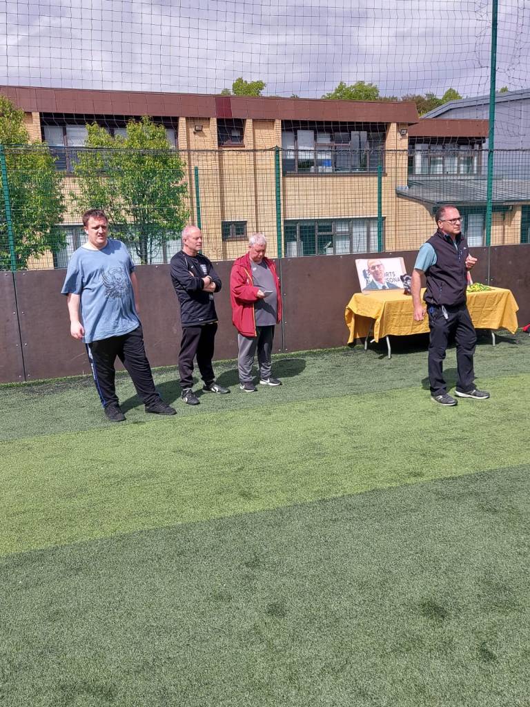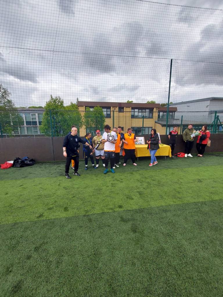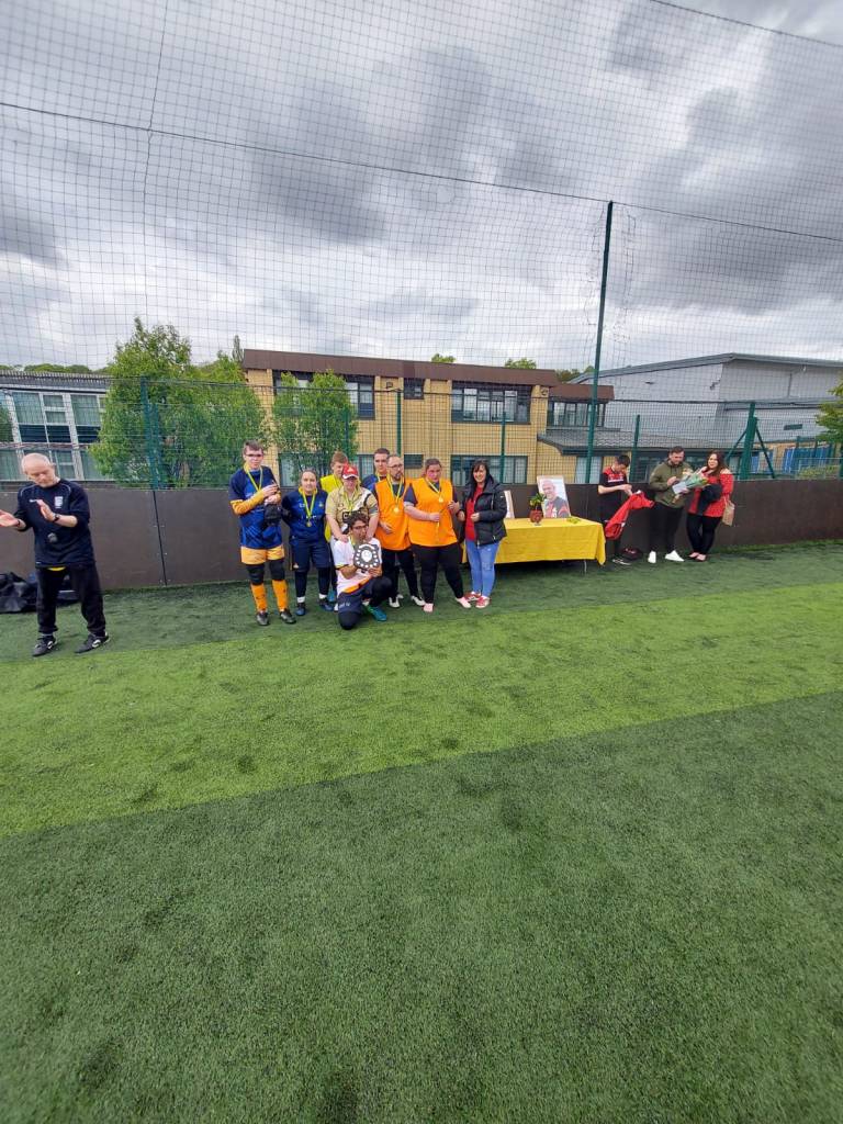 The inaugural Darren Warner 5-a-side Fair Play award, nominated by Sean and his fellow referees, went – fittingly – to Club Doncaster Titans (Blue) with Sharon presenting the Shield to skipper Cameron Mounde and his team. [below]