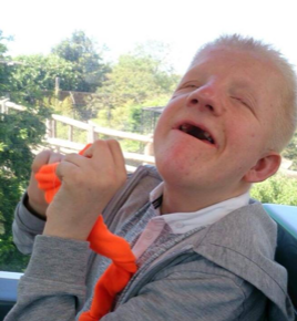 Home life was always frenetic with Chris, so football was always the family escape. Chris was non-verbal and profoundly deaf and later lost his sight, however his smile and use of ‘body language’ ensured he always got his point across. He only really got upset if someone took his football sock away from him (from an early age he used a football sock as a ‘comforter’).