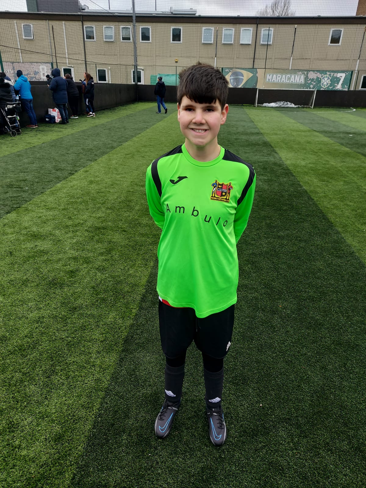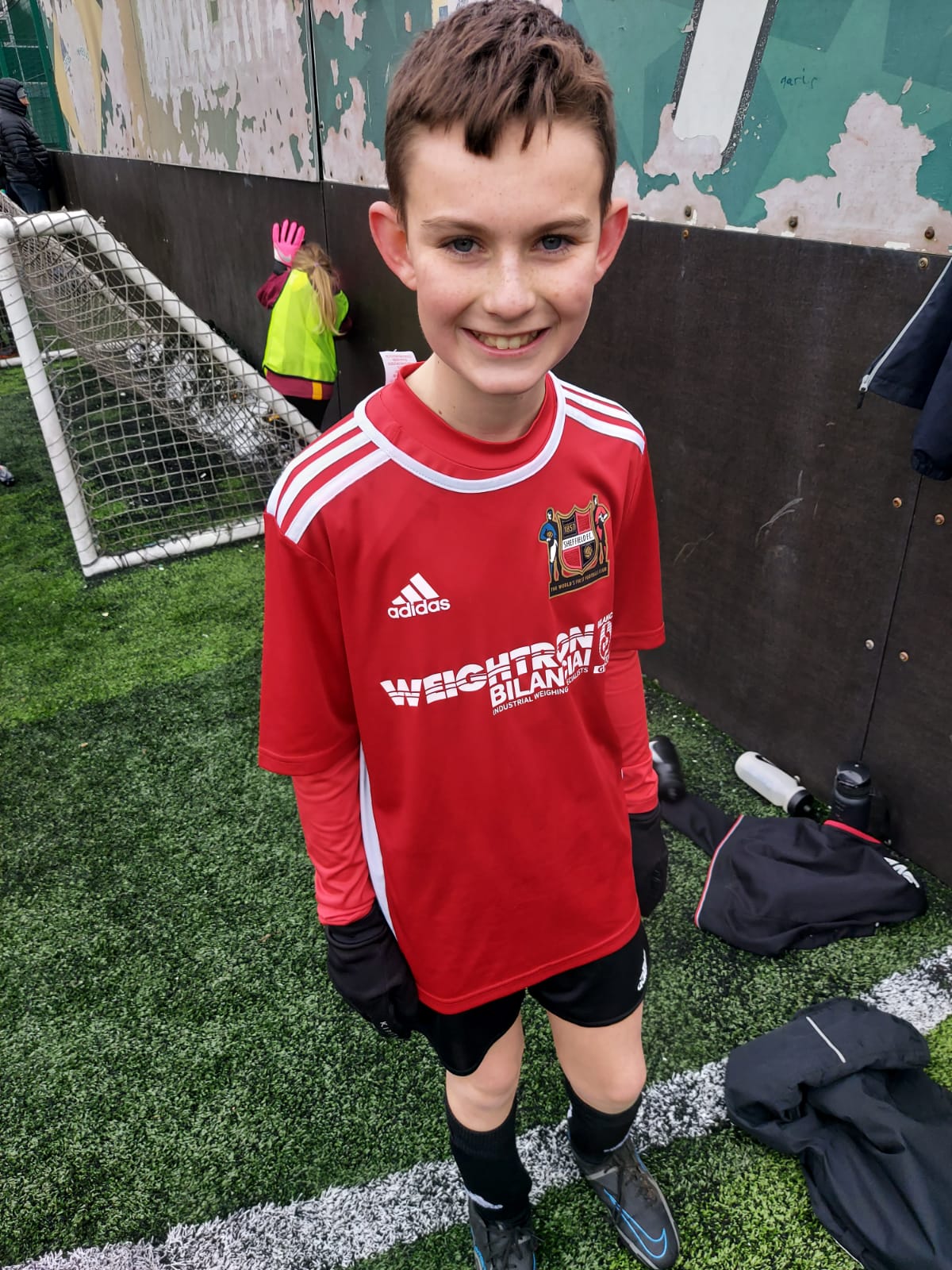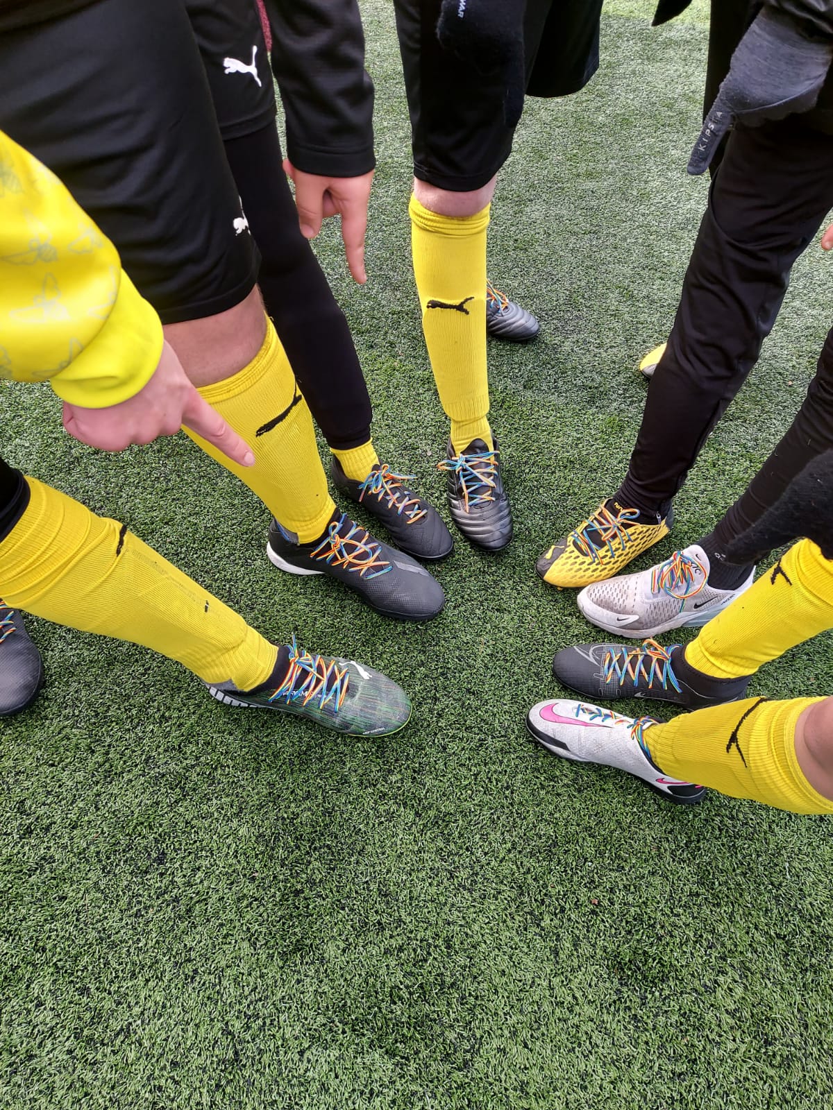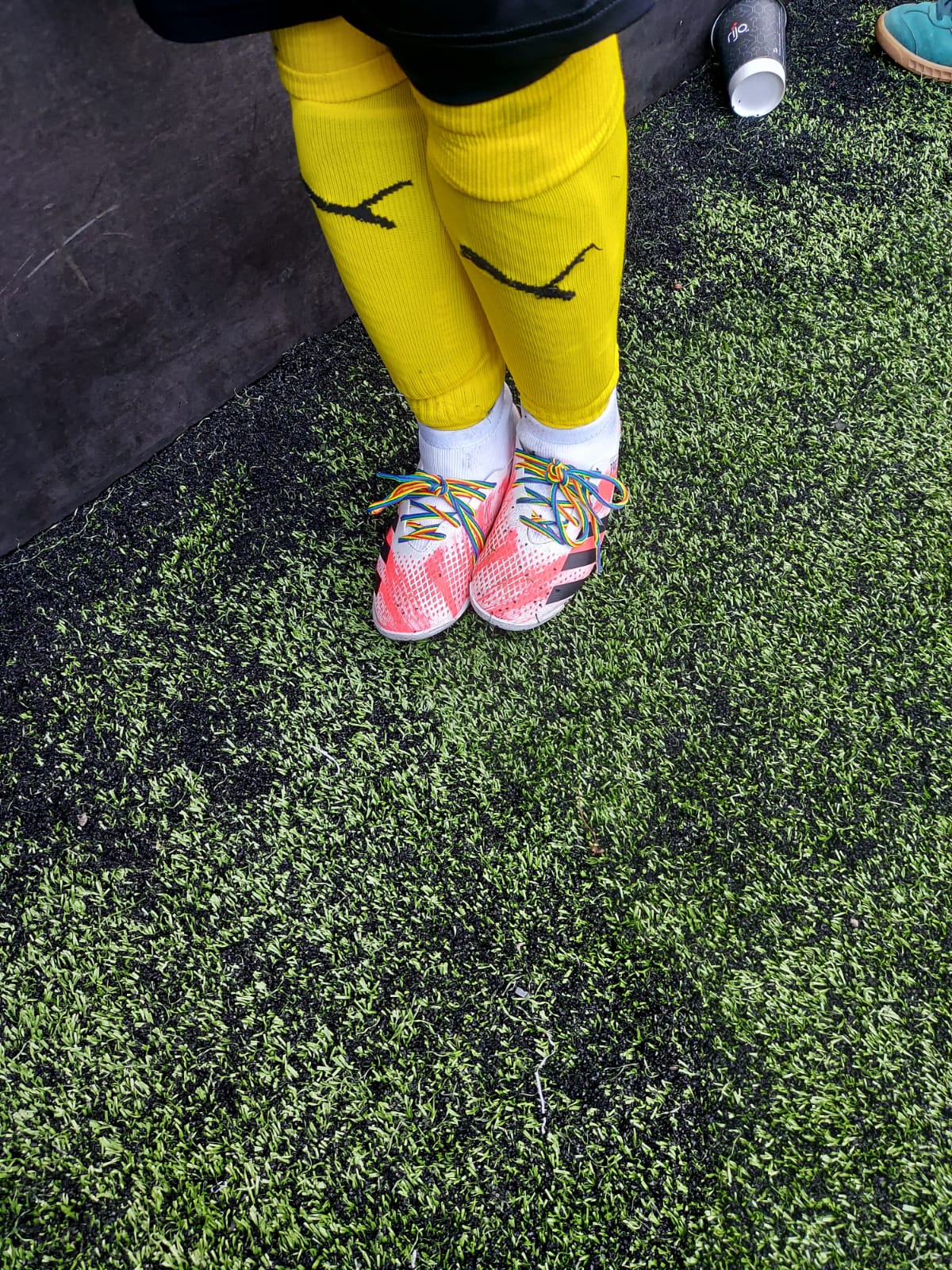 Fantastic boots with the multicolour laces surprised one little visitor! But look at the smiles of enjoyment on the faces of the players.