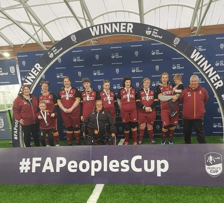 Bradford City Disability FC have led the way in delivering female disability football provision both in Bradford and in the West Riding. The women’s team started in January 2018 with a turn up and play session. Their first year in competitive football they were runners up in the FA Peoples Cup, a national competition and found themselves included in the National Football Museum and racking up over 100k views on Twitter. 12 months on they did it again as runners up in 2019, narrowly missing out.