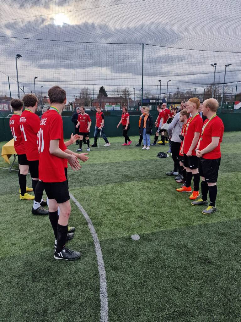 The weather held and the sun shone for Mother’s Day at Goals Doncaster as the www.southyorkshireabilitycountsleaguecom 5-a-side season came to a thrilling conclusion last Sunday. The afternoon also included the presentation of the Juniors Respect prizes and the award of the Darren Warner Fair Play Trophy, the winning club having been selected by our referees, led by our brilliant Referees Secretary, Sean Wright.