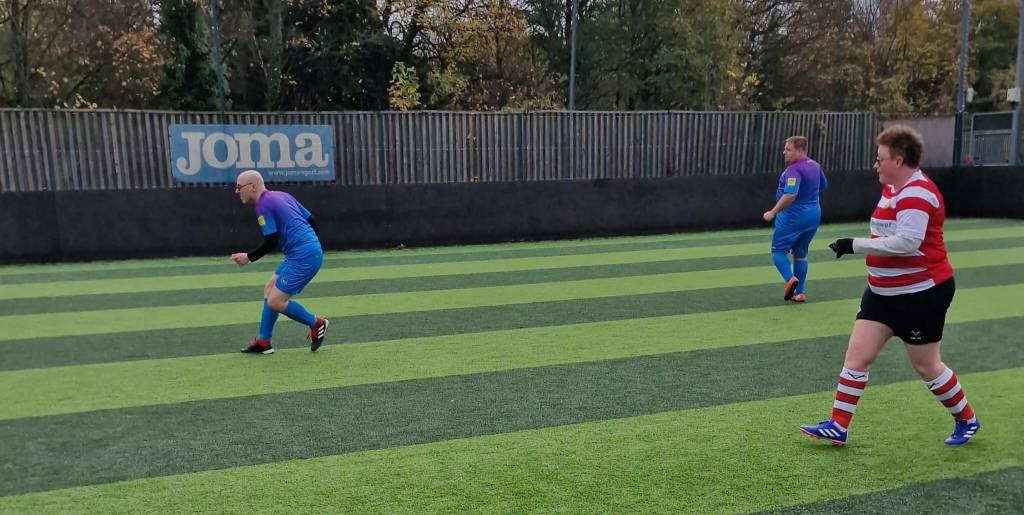 Up next, the Bradford City Disability FC derby, with Jamie’s Diamonds clinching an 8-7 win over Paul’s Emeralds in a match in which defences were certainly not on top. It was a great game, and there are pictures of parts of the action on the website at www.southyorkshireabilitycountsleague.com. Needless to say, one half of the Bradford management team was smiling a little more than the other when the whistle blew. A great game!